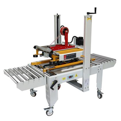 半自動上下封箱機是由人工預選進行紙箱折蓋,然后推入半自動封箱機內進行上下一字封箱。半自動上下封箱機采用上下驅動式封箱機,封箱效率高:上下驅動式封箱機可同時進行上下自動封箱,方便,速度快,效率高,封箱機可單機作業(yè),也可與自動化包裝流水線配套使用。