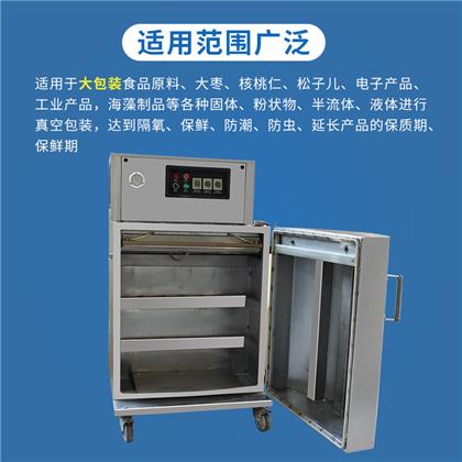 立柜式真空包裝機采用優(yōu)良不銹鋼材料結構,主要用于粉末、顆粒、半流體或大包裝物體的真空包裝。該機型真空室容積大,袋口立封形式。可連同產品外包裝(如:箱、桶、盒)。直接擱置于真空室內,抽真空,封口,冷卻,放氣,全過程均可自動控制及完成。開門式的操作形式,便于重物擱置。(該型機可根據用戶特殊尺寸、配置要求定做)。